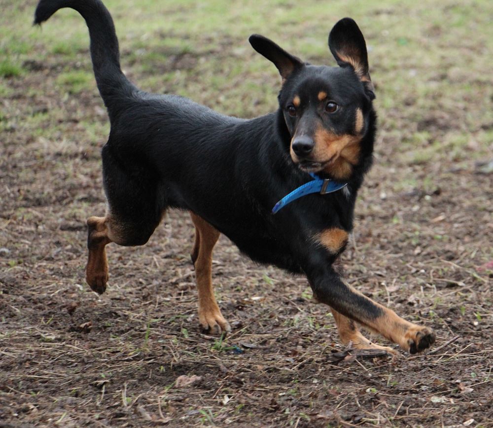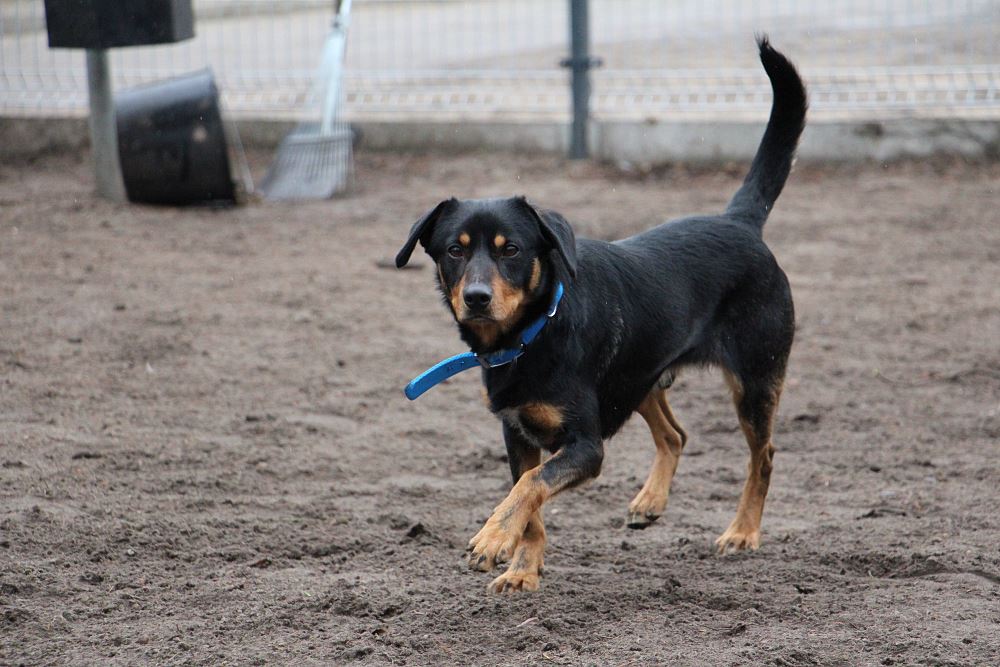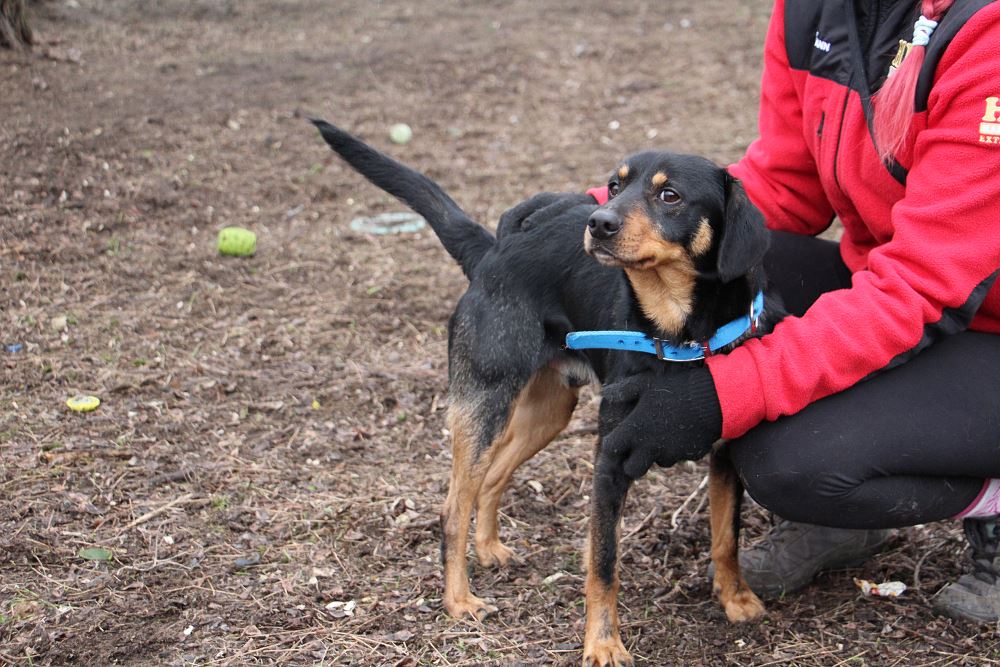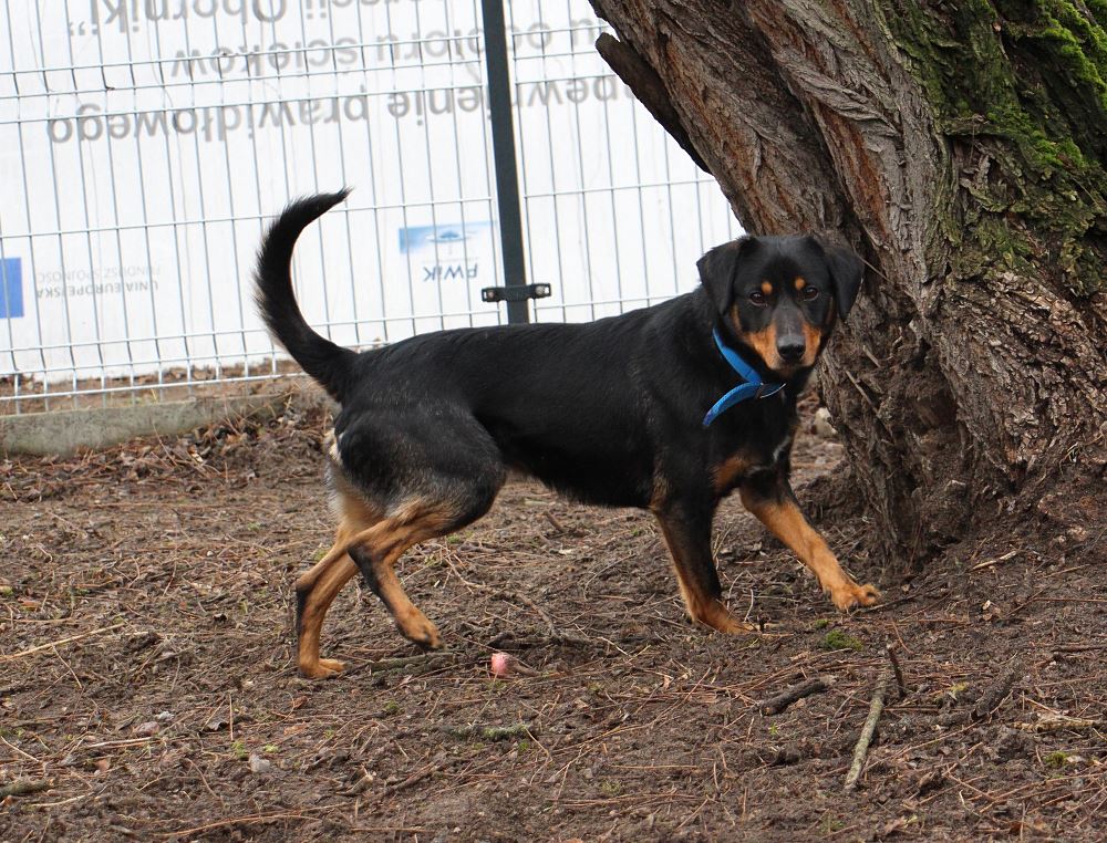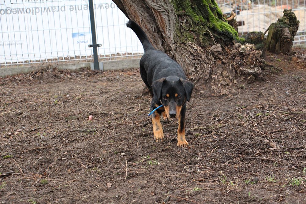 FĄFEL Pies przywieziony 30 stycznia 2024 r. z Rogoźna. Pies ma ok 3 lat, waży 15 kg. Fąfel potrafi chodzić na smyczy. Dogaduje się z bardziej uległymi psami.