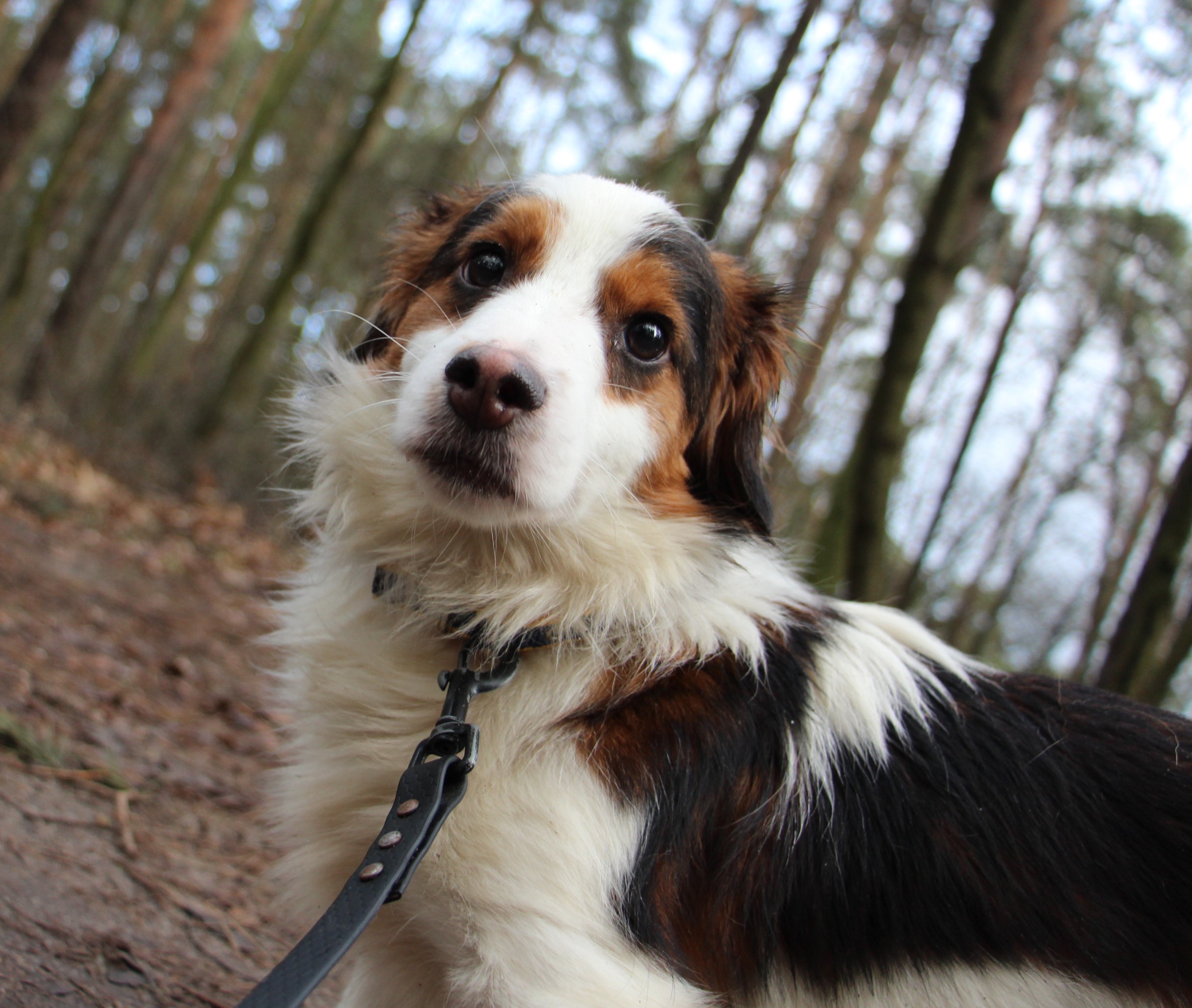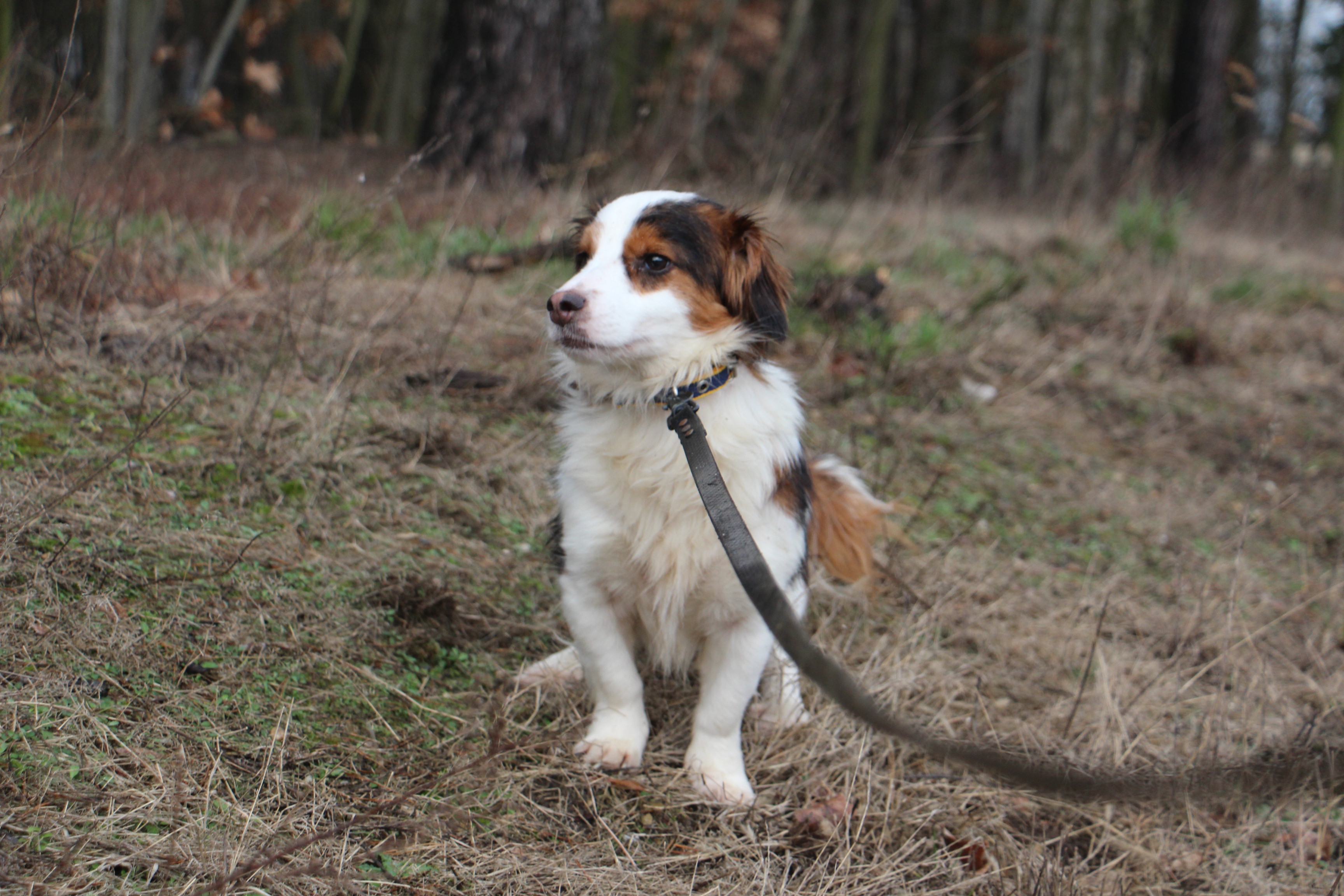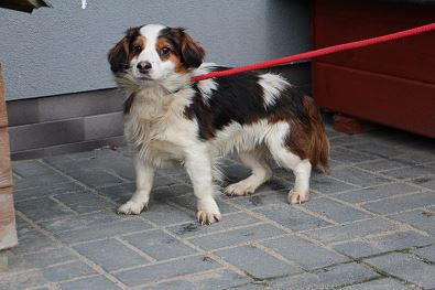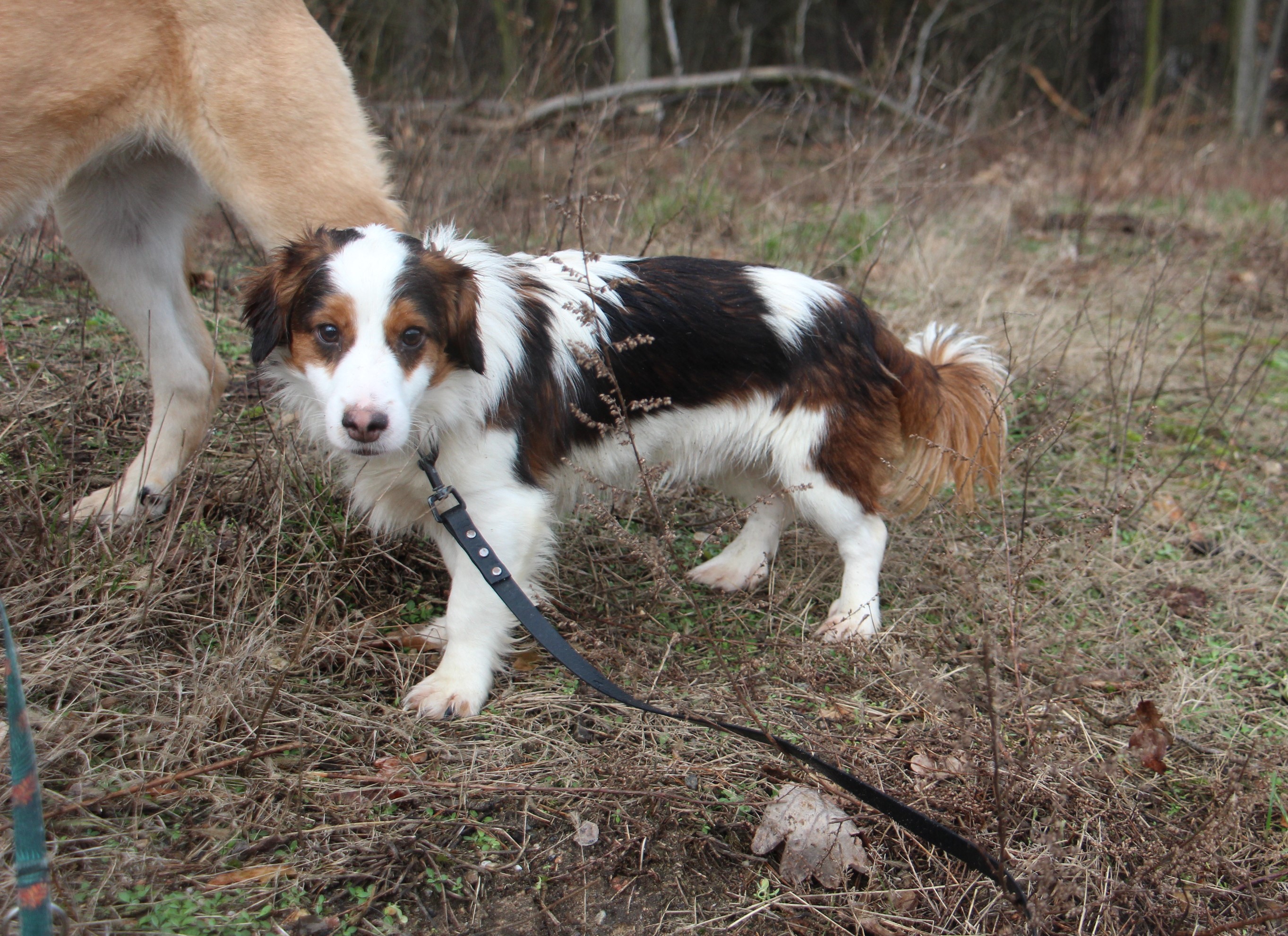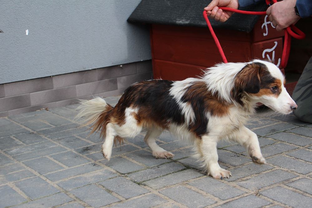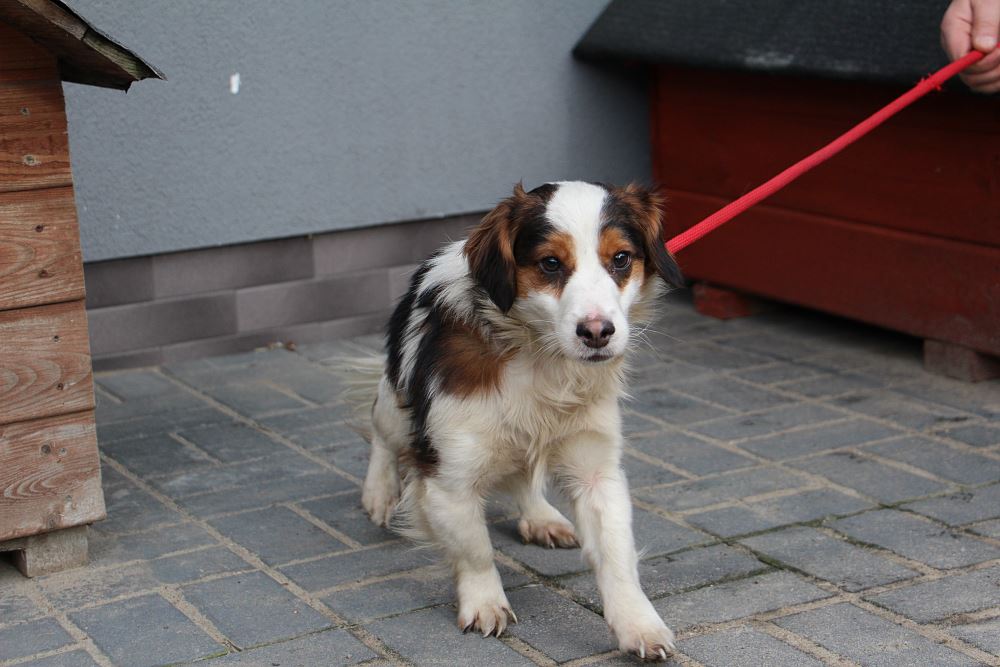 Pies, mieszaniec, około 1,5 roczny, 6 kg, przywieziony 1 lutego 2024 z Rożnowa gmina Oborniki. Psiak jest bardzo przestraszony.