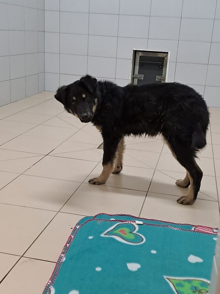 DENZEL Pies, szczeniak przywieziony 7 lutego 2024 r. z Lwówka, z Rynku. Ma ok. pół roku, waży 9 kg. Jest grzeczny, spokojny.