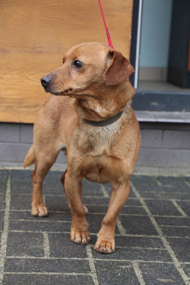 KOSTEK Pies przywieziony z Kościana z ul. Bocznej 21 lutego 2024 r. Psiak jest mały ( 8kg, ok 2-3 lat) przestraszony sytuacją. Jest łagodny, brak czipa.