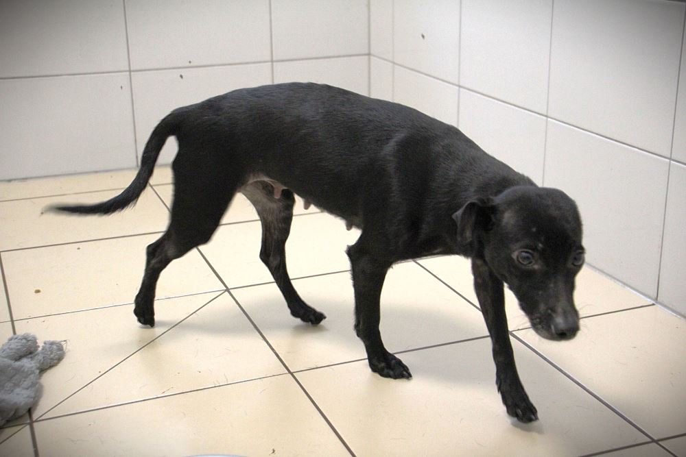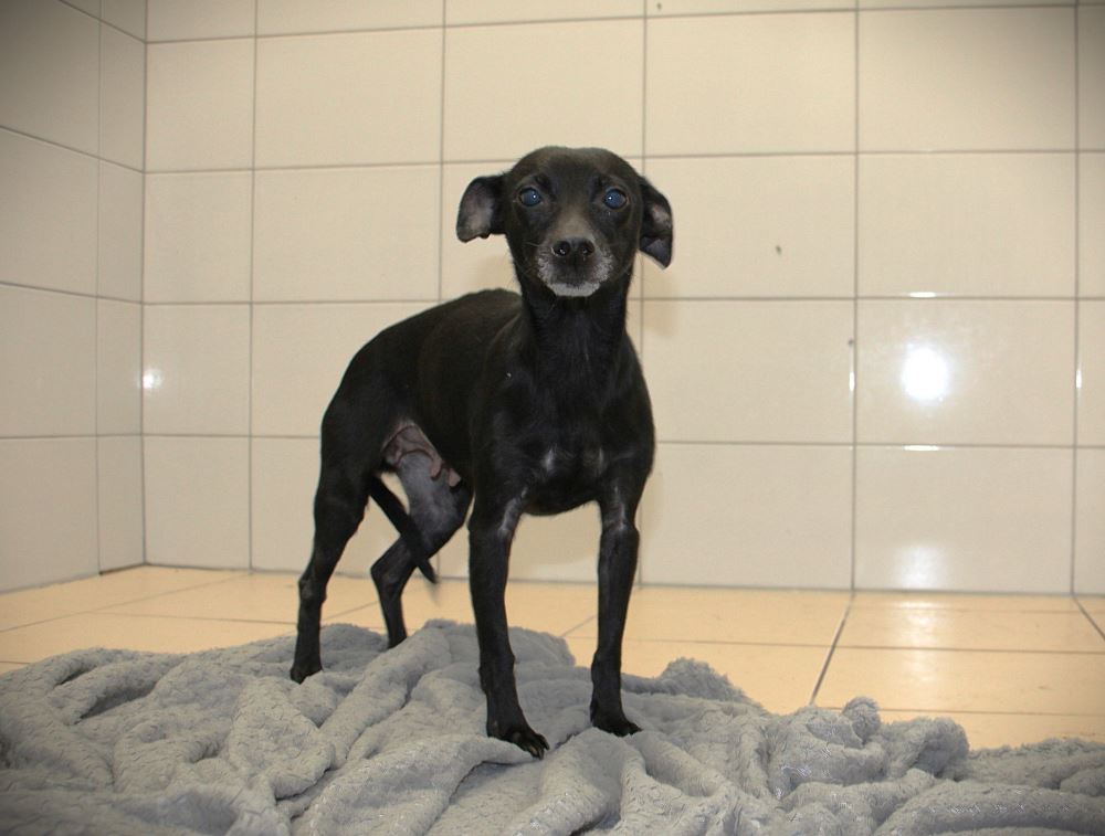 ZŁOTÓWA Sunia nabrała sił, waży 5,5 kg. Chętnie chodzi na spacery. Zgadza się z innymi psami. Złotówa jest bardzo skoczna i szybka. Sunia sporo szczeka. Suczka przyjechała do schroniska 7 maja 2024 r. z gminy Czarnków. Była odebrana interwencyjnie razem z Centem i Zadymą przez gminę, policję i PIW. Złotówa waży 4,5 kg, ma ok. 5 lat. Potrafi chodzić na smyczy. Jest straszną panikarą, i to dość głośną. Złotówa rozpoczyna nowe życie, teraz nie będzie brakowało jedzenia, nie będzie pcheł, krzyków.