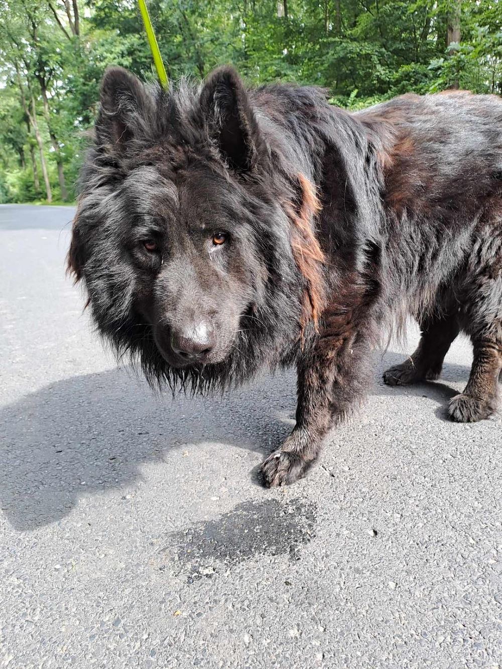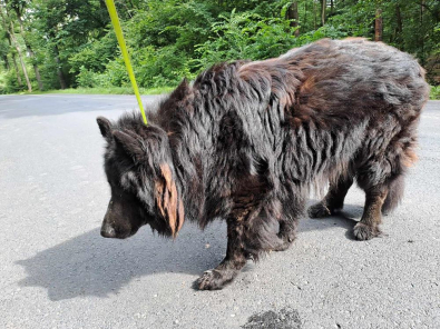 Pies odłowiony 14 czerwca na trasie Pakosław Michorzewo w gminie Lwówek. Posiada charakterystyczne palce w przednich łapach oraz jest jednostronnym wnętrem. Brak czipa i tatuażu.