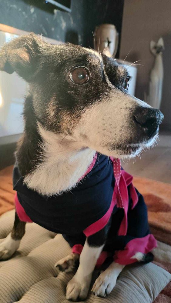 GWIAZDKA Sunia odebrana interwencyjnie 17 lipca 2024 r. Gdy ją znaleziono, tabuny pcheł zjadały jej małe ciałko, stąd silna anemia Gwiazdki. Sunia waży niecałe 10 kg. Gwiazdeczka przeszła operację usunięcia olbrzymiego rozpadającego się guza listwy mlecznej. Od dnia 24 lipca sunia jest na stanie schroniska, ale przebywa w domu tymczasowym, w którym dochodzi do zdrowia. Trudno nie zakochać się w malutkiej jest tak grzeczna i przyjazna. Psina ma ok. 9 lat.