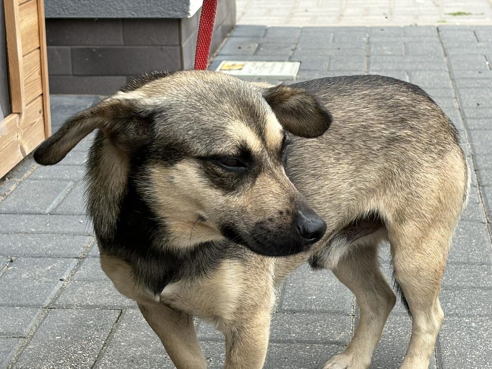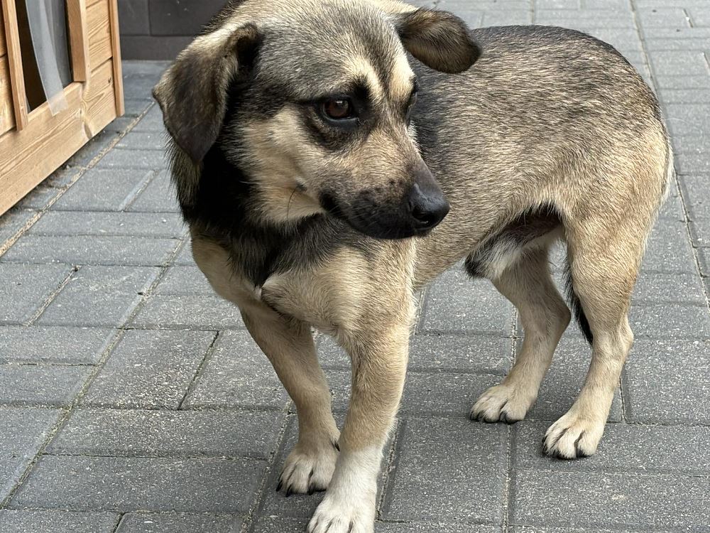 ŁUKI Pies złapany 1 sierpnia 2024 r. w Pruścach, gmina Rogoźno. Na razie jest nieufny, nie zna smyczy. Po zakończeniu kwarantanny będziemy go oswajać i przygotowywać do adopcji.
