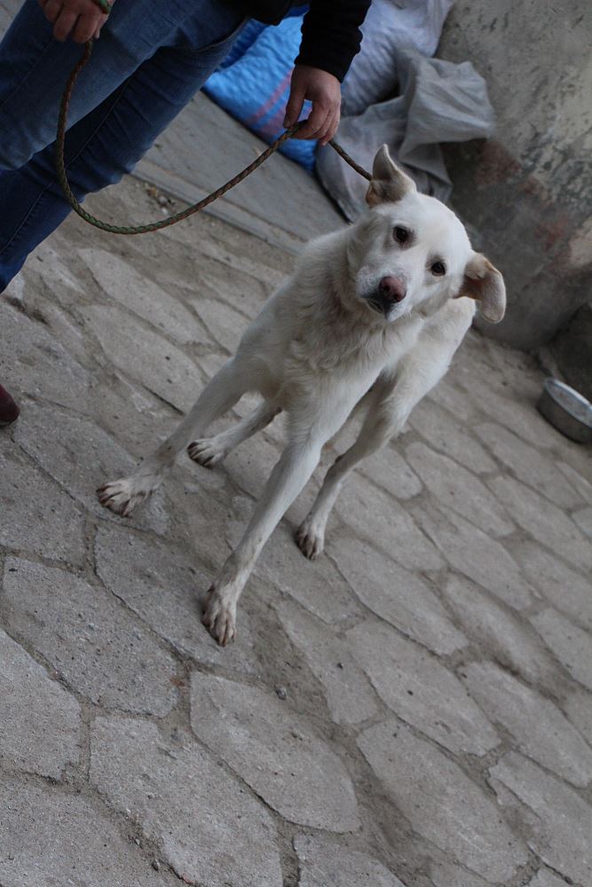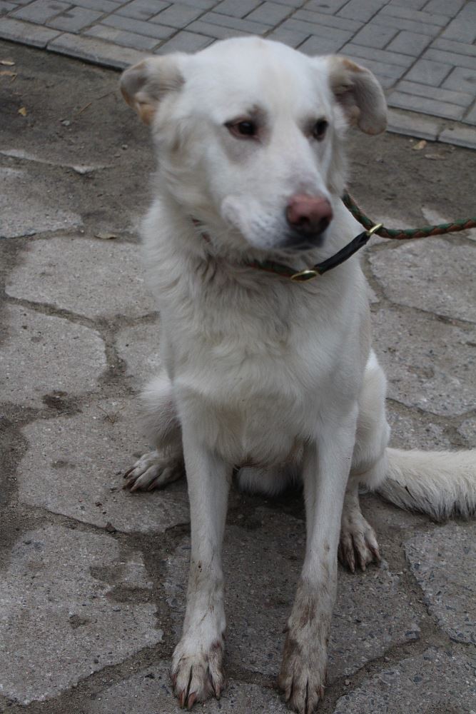 Biały Samiec przywieziony 5 listopada z gminy Nowy Tomyśl, odebrany w trybie interwencji przez Stowarzyszenie Pomocy Zwierzętom Łapa. Psiak był utrzymywany na uwięzi bez możliwości schronienia się przed złymi warunkami atmosferycznymi. ma około roku.