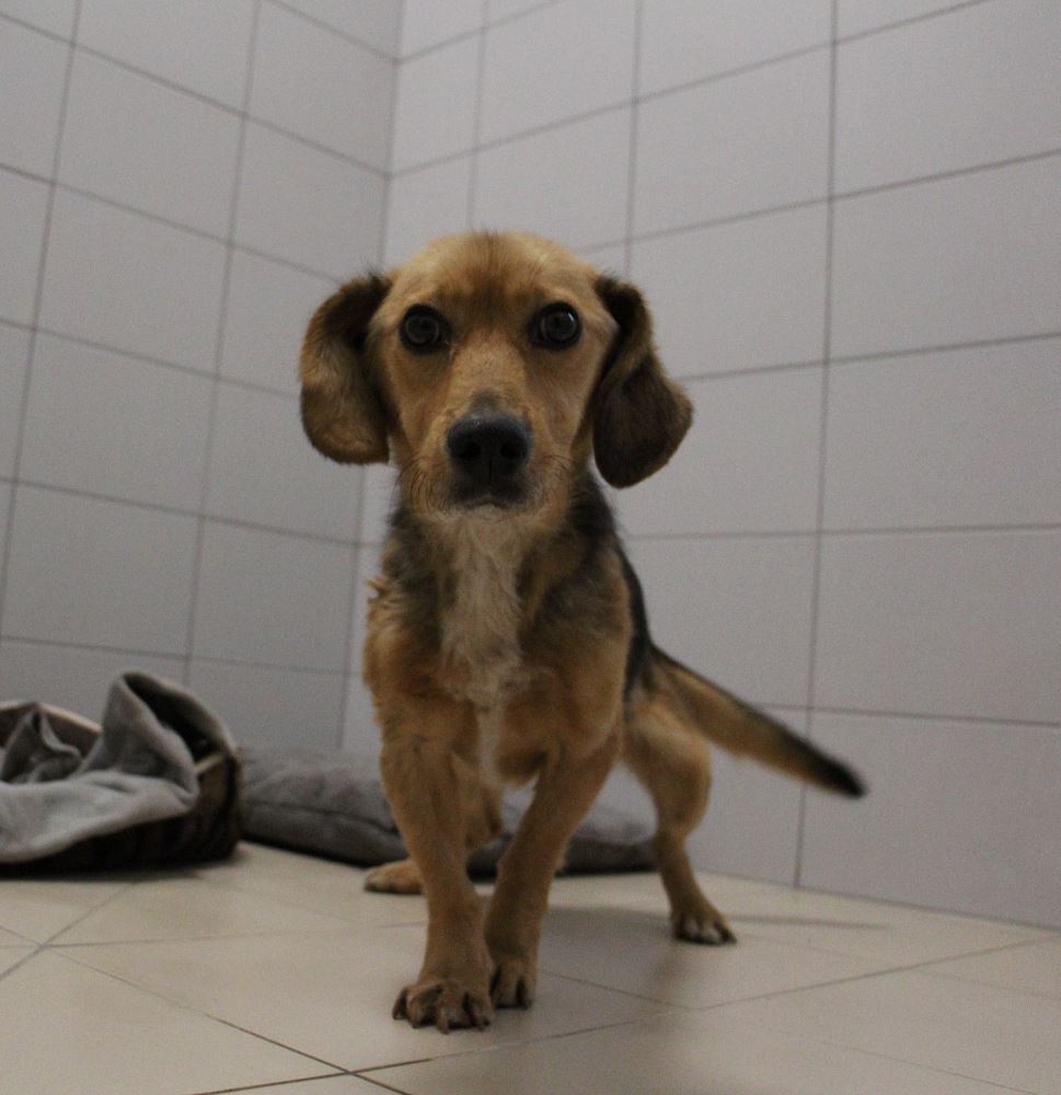 SYLWKA Sunia przywieziona 30 grudnia 2024 r. z Władysławowa, gmina Lwówek. Sylwka ma ok. 5 lat, waży obecnie 9 kg, ale jest bardzo chuda. Sunia trafiła do nas ze starymi szwami prawdopodobnie po sterylizacji. Sylwka boi się trochę ludzi, jakby była kiedyś przeganiania, ale jest łagodna i spokojna.