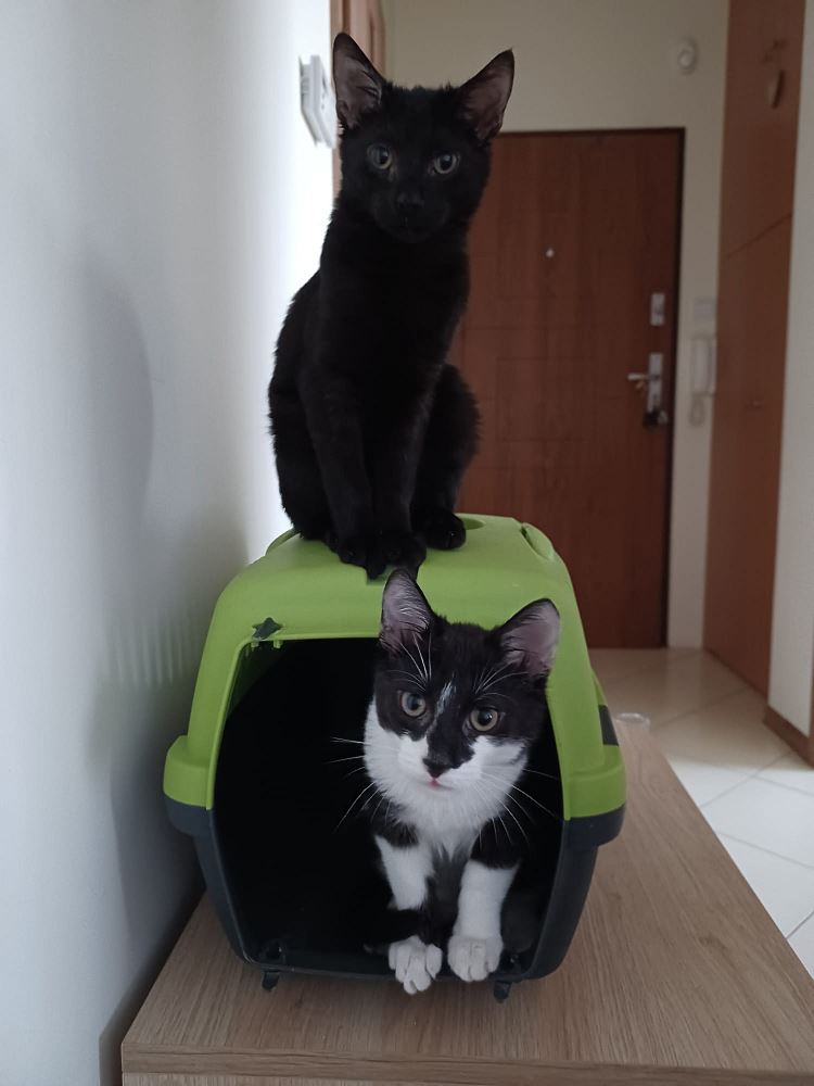 WEGIELEK i KARBONIK Dwa kocurki trafiły do kliniki jako trzytygodniowe kocięta z dużym katarem. Udało się ich wyleczyć i z pomocą koteczki zastępczej odchować. Teraz w domu tymczasowym czekają na nowy dom. Gdyby pojechali do domu w dwupaku byłoby wspaniale, ale w pojedynkę też dadzą radę. Kociaki mają teraz 4-5 miesięcy.