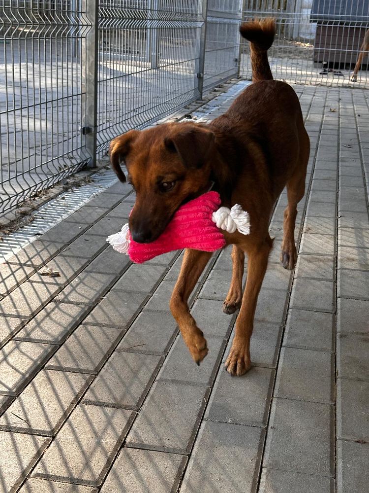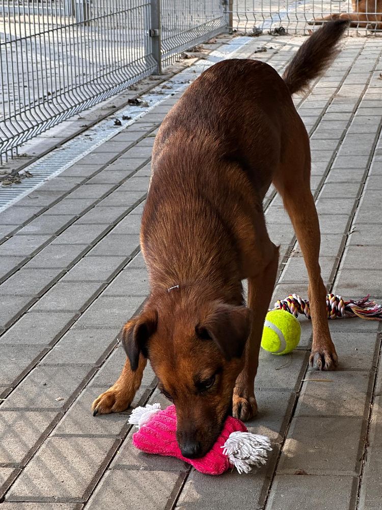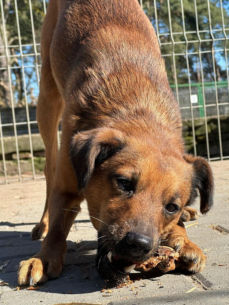 NERO Pies przywieziony 28 lutego 2025 r. z Ninina, gmina Ryczywół. Pies ma ok. 4-5 lat, waży 8,5 kg, Zgadza się z psami, stara się utrzymywać czystość. Jest aktywny, chętnie się bawi, chodzi na spcery