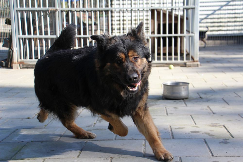 SZIRAN Pies przywieziony 1 marca 2025 r. z gminy Rogoźno. Sziran przyjechał ze swoim bratem Edem. Pies ma ok. 3-4 lat, waży 33 kg. Łagodny dla opiekunów. CHętnie chodzi na spacery. Sziran jest żywiołowy.