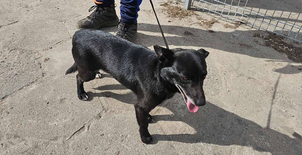 PIMPEK Pies znaleziony 12 kwietnia 2025 r. na drodze miedzy Parkowem a Rożnowem, gmina Oborniki.