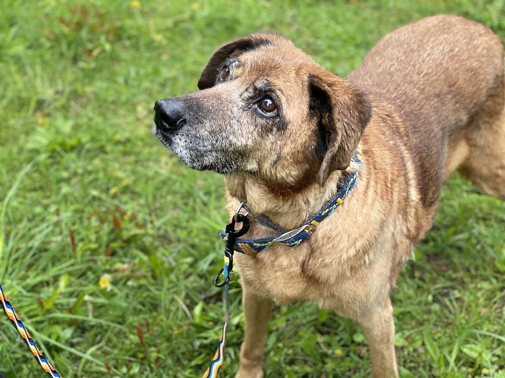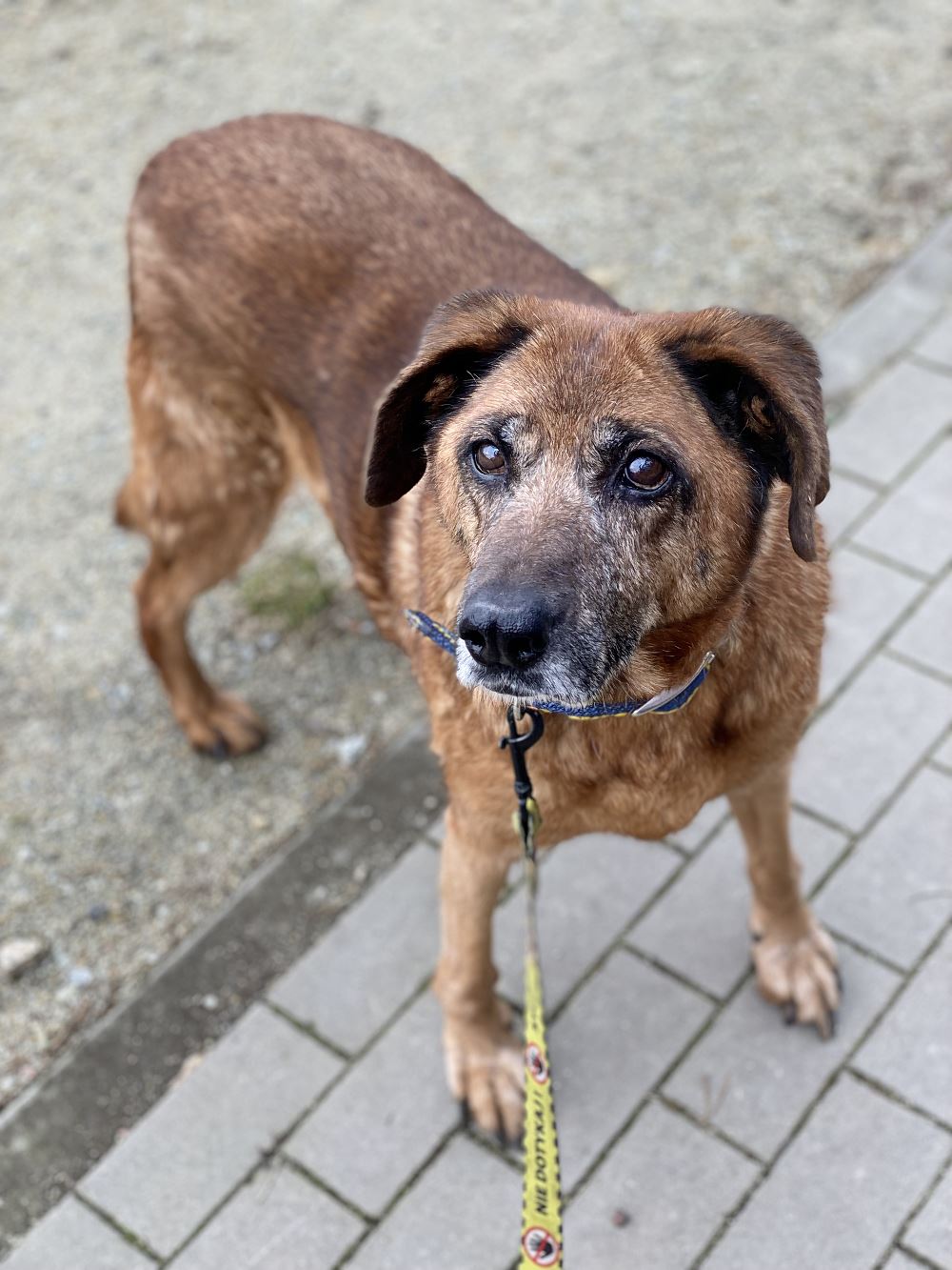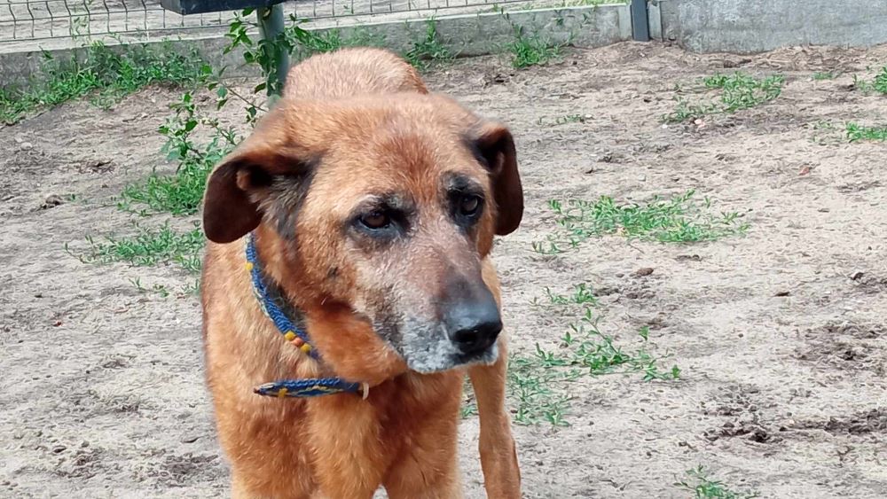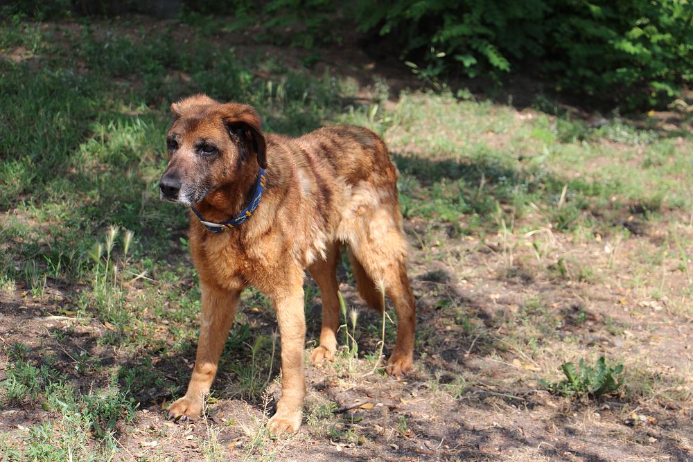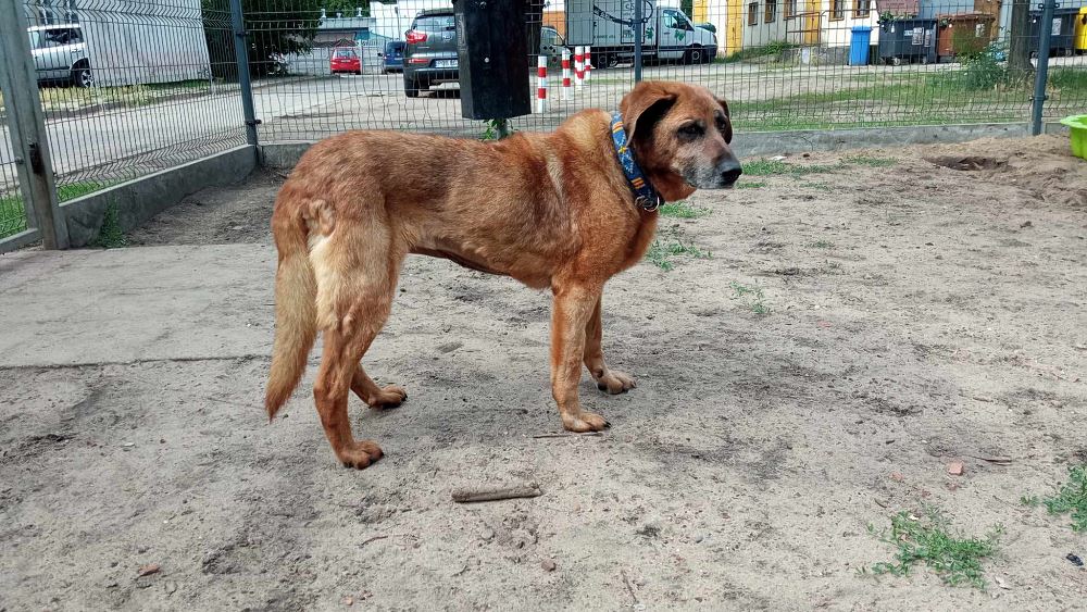 Aza trafiła do schroniska 22 maja 2023 r. razem z owczarką Lenką. Lenka znalazła dom tymczasowy. Brązowa Aza została sama :( Suczki odebrane w trybie interwencyjnym przez TOZ oddział Oborniki w gminie Oborniki. Sunie były bardzo wychudzone i schorowane. Aza oceniona na 10 lat, Lenka na 7+. Aza jest bardzo spokojna i uległa. Obawia się gwałtownych ruchów.