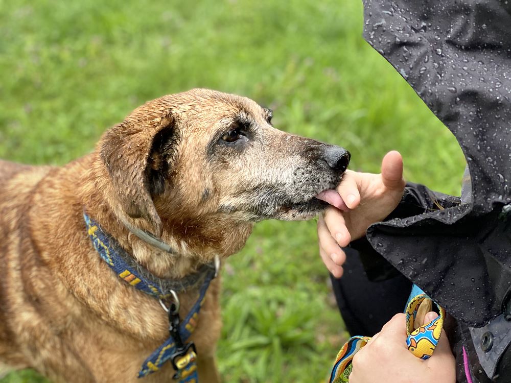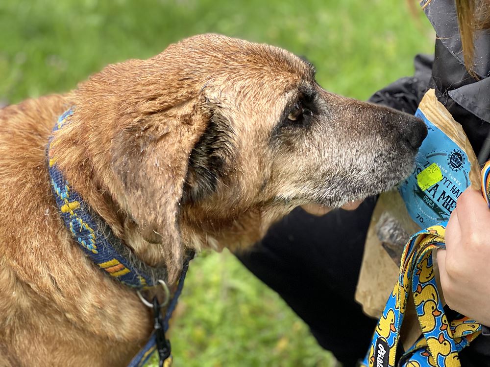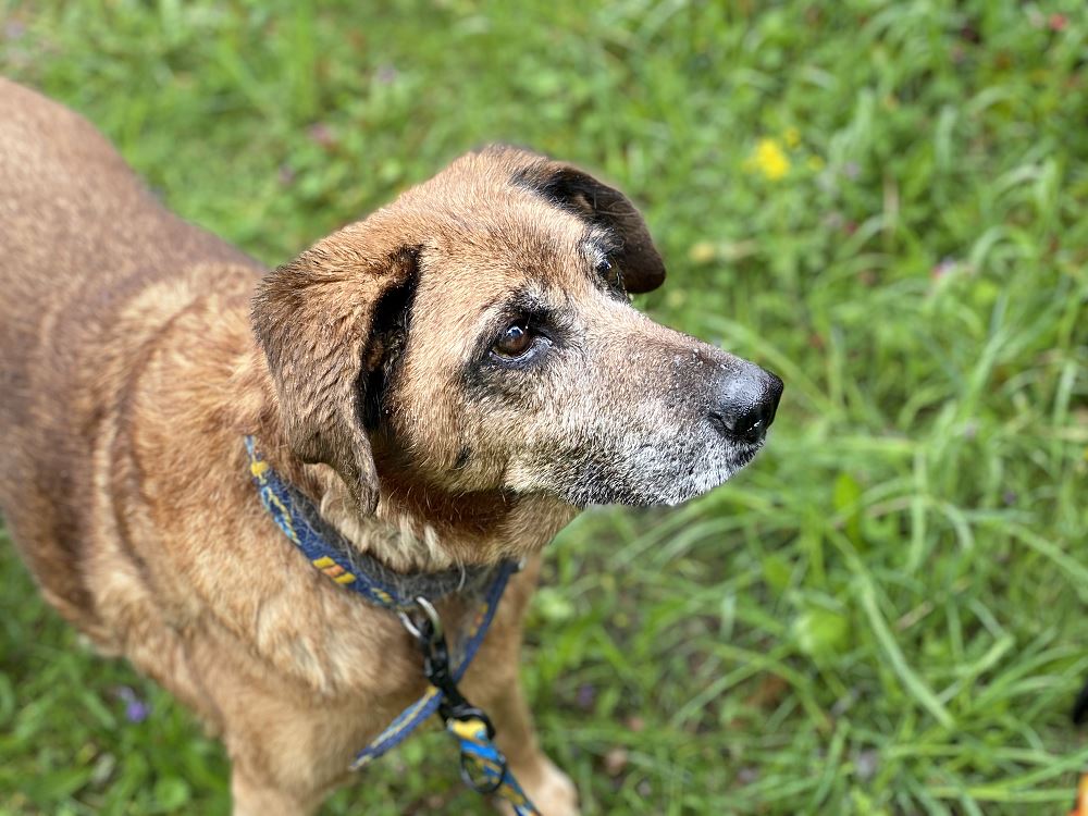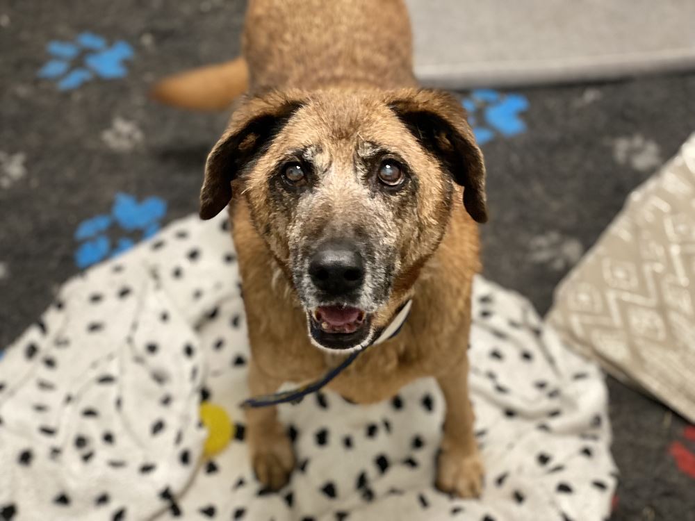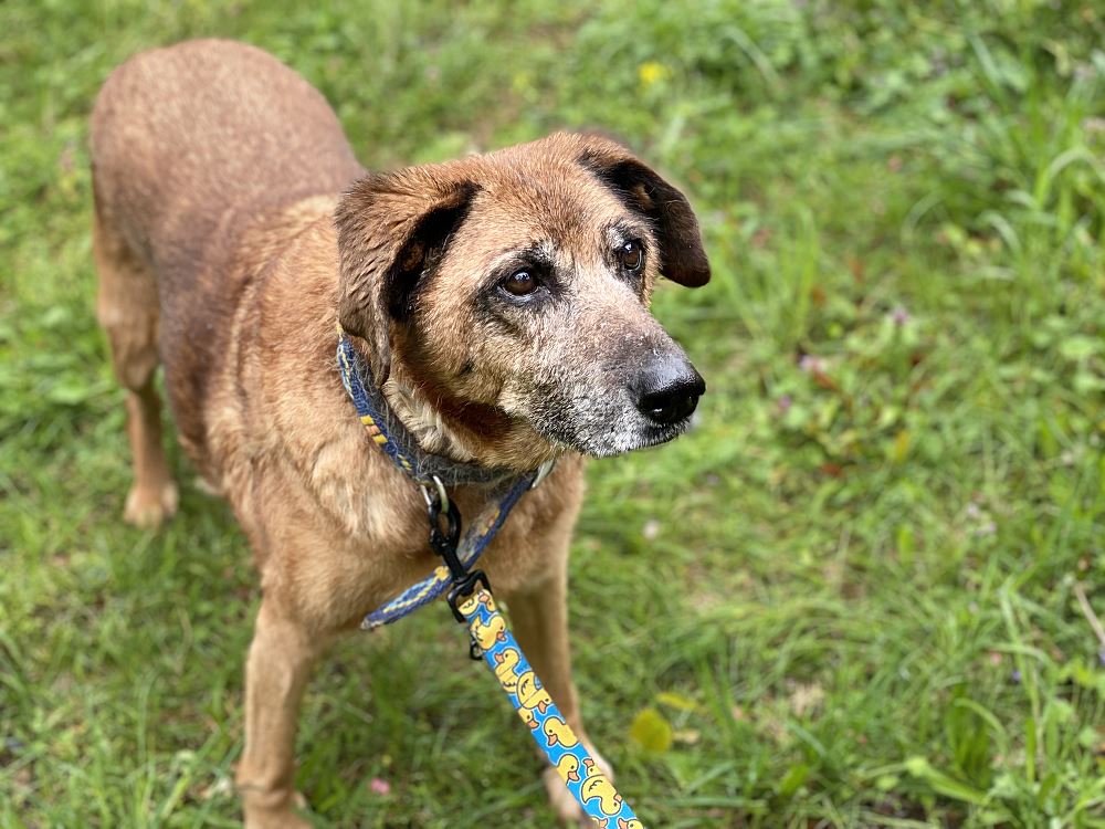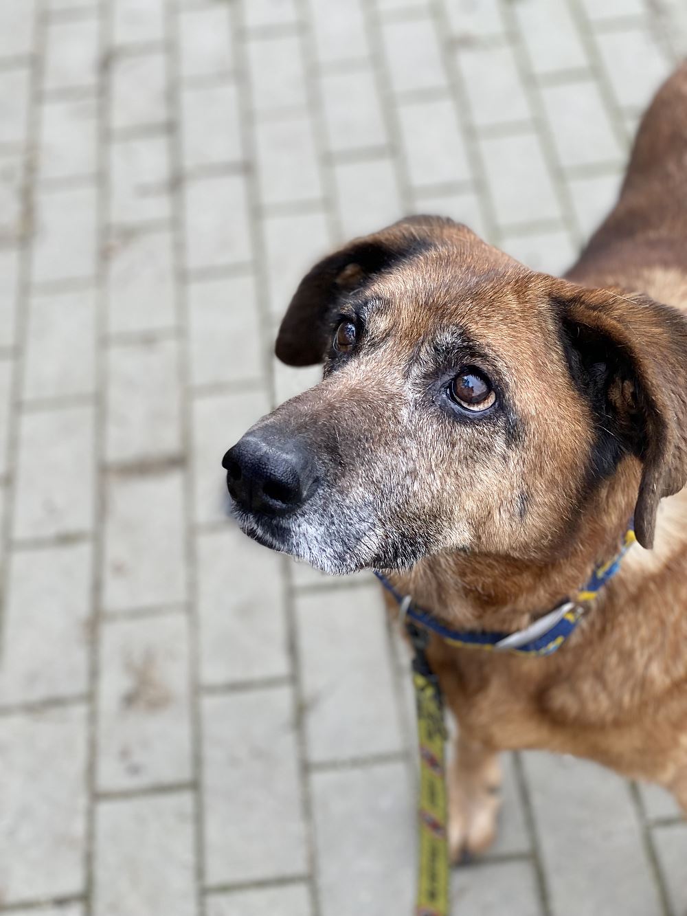 Aza trafiła do schroniska 22 maja 2023 r. razem z owczarką Lenką. Lenka znalazła dom tymczasowy. Brązowa Aza została sama :( Suczki odebrane w trybie interwencyjnym przez TOZ oddział Oborniki w gminie Oborniki. Sunie były bardzo wychudzone i schorowane. Aza oceniona na 10 lat, Lenka na 7+. Aza jest bardzo spokojna i uległa. Obawia się gwałtownych ruchów.