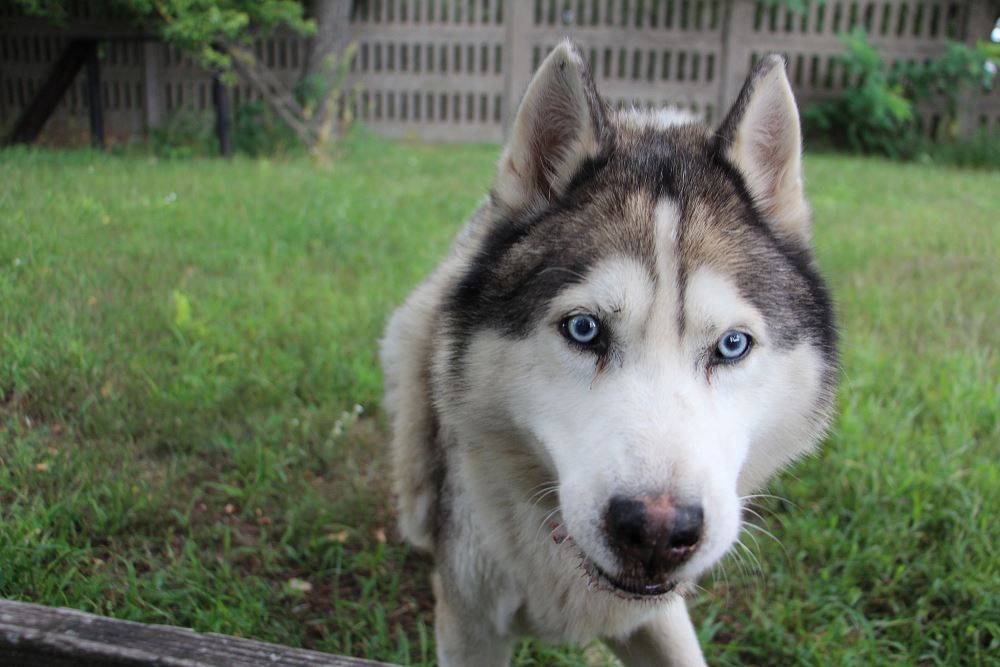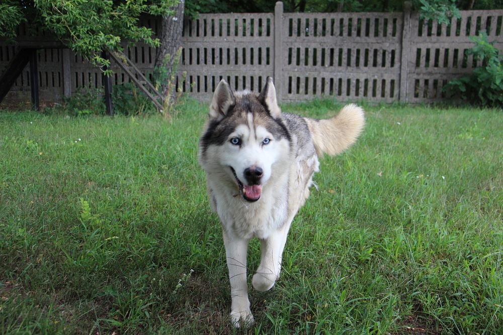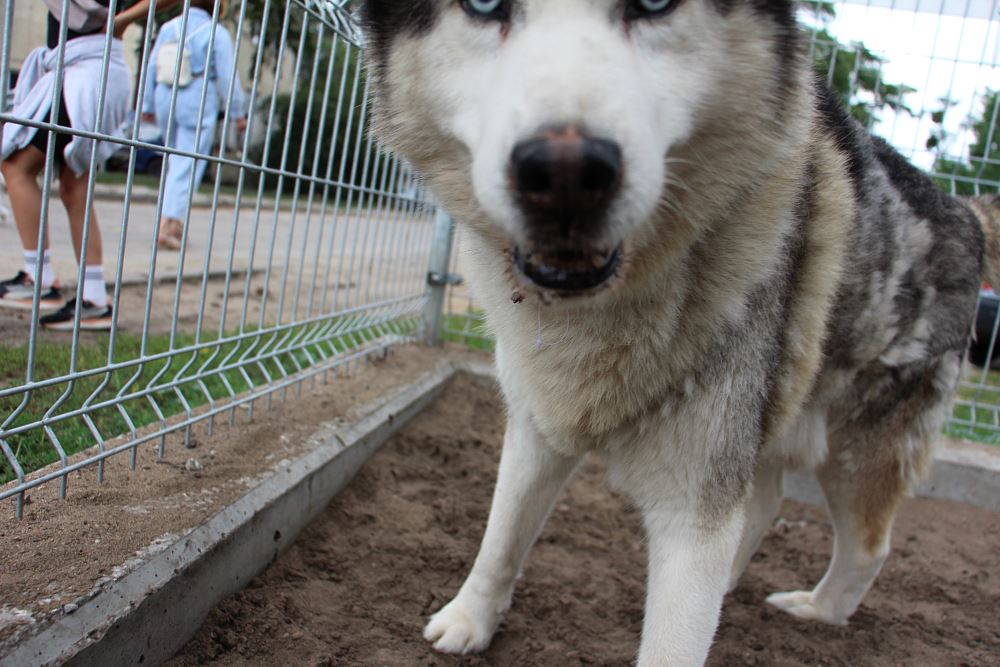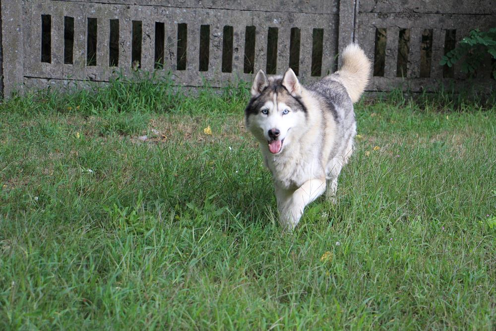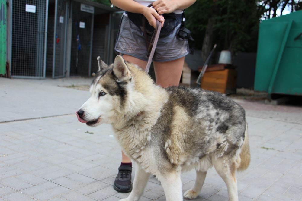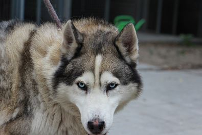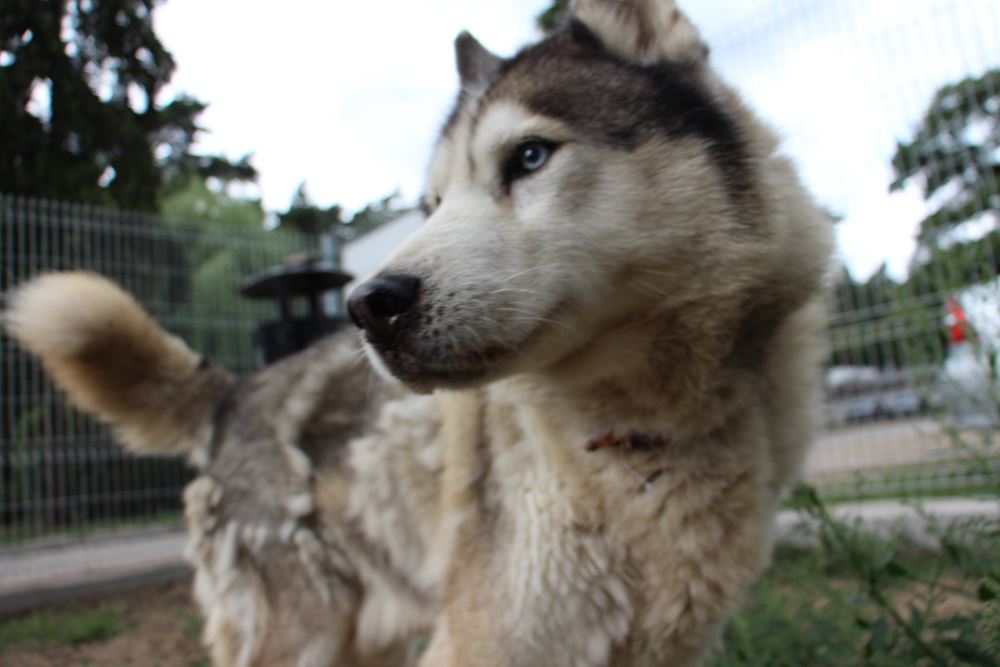 BAGGI Pies przywieziony do schroniska 23 lipca 2024 r. z Bogdanowa, gmina Oborniki. Pies ma ok. 10 lat. Lekko kuleje. Stara się utrzymywać czystość w kojcu. Baggi jest gadatliwy jak typowy husky.