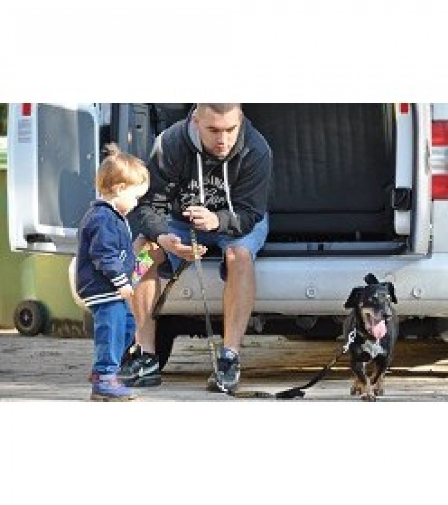 Jego początki to były wizyty w schronisku z synem Jasiem. Maciej złapał azorkowego baksyla i praktycznie w każdy weekend zajmuje się dużymi psami, choć jak widać na zdjęciu podczas wizyt z Jasiem spacerują w towarzystwie małych azorków.